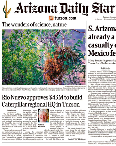 Our bobcat inserting itself into one of the most celebrated mutualistic interactions in Sonoran Desert is the frontpage of Arizona Daily Star — the state largest newspaper. This is our fourth (e.g., #3) cover with the newspaper. The original photo is here.