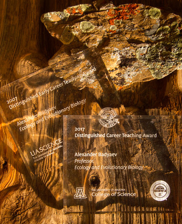 Alex receives The 2017 College of Science Distinguished Career Teaching Award. The (in)famous ECOL 330: Evolution of Animal Form and Function continues to live up to unrealistically "high expectations of learning, creativity, discussion, and discovery" cited in the 2007 Distinguished Teaching Award. In 2018, the course will be significantly restructured.