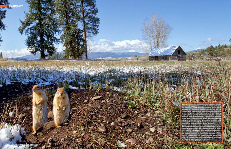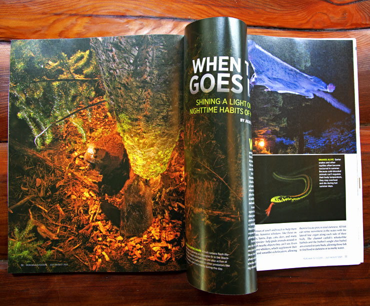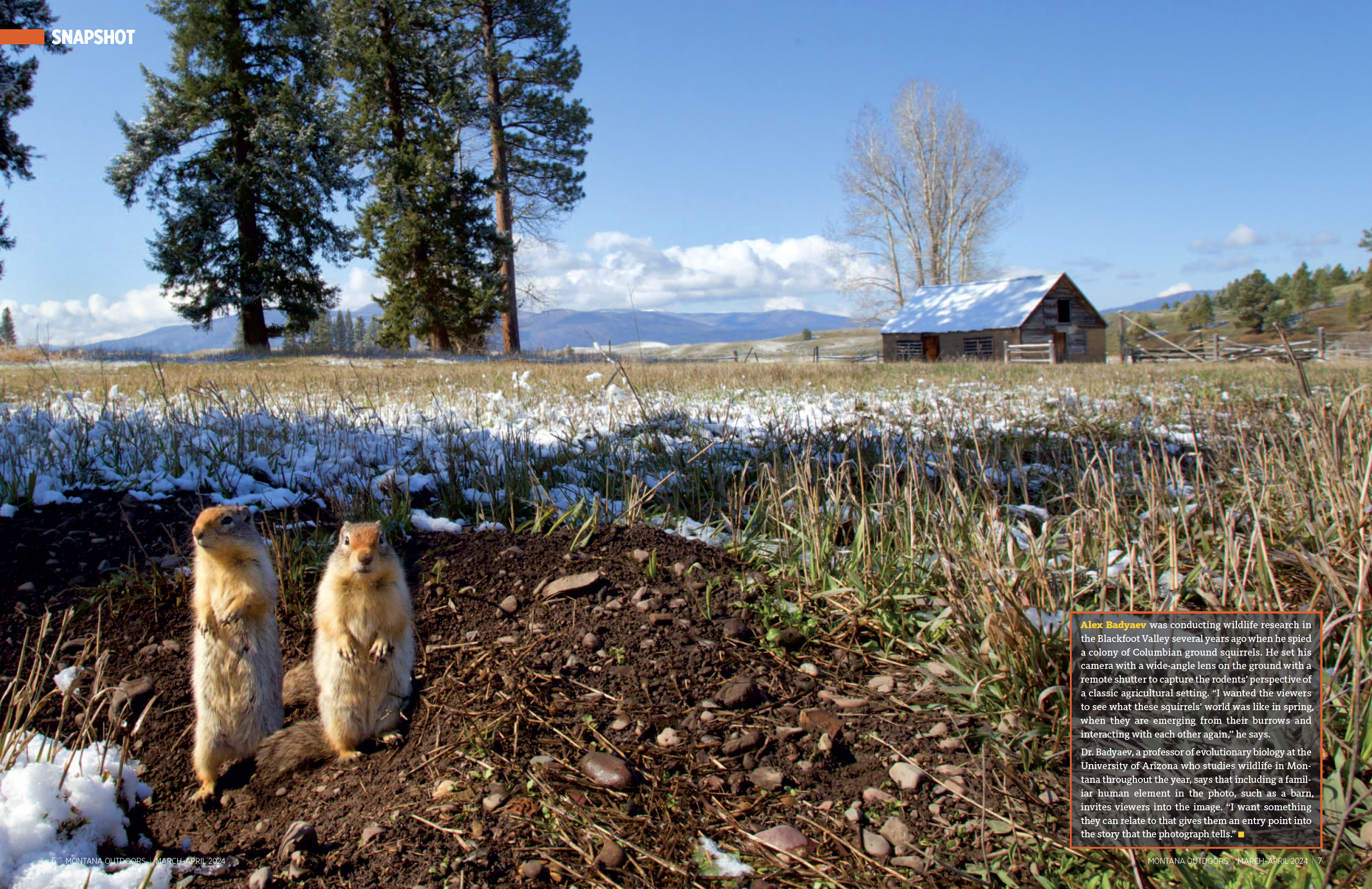 Our "Morning Chat" photo, that debuted as an Order Rodentia opener in our "Mammals of Montana" book is featured as a double spread in the Spring 2024 issue of Montana Outdoors with the caption perceptively pointing often noted "human dimension" style in nature photography. UPD: The photo is now the header of Fish, Wildlife and Parks website for the months of May and June.