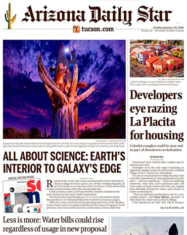 Arizona Daily Star puts us on its cover, highlights two (1, 2) lab research projects in its Science 2016 section, and uses our photo to celebrate state's birthday. This is our third cover with this newspaper.