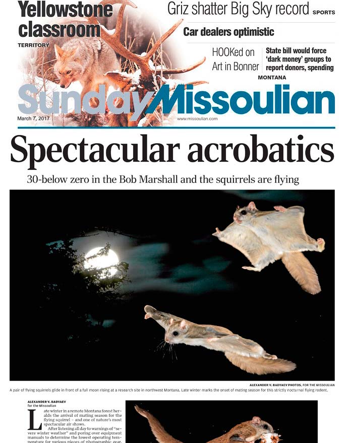 The lab's side project on evolutionary innovations in flying squirrels made the front page and a multipage Sunday Territory feature of Missoulian, the largest newspaper in the state of Montana.