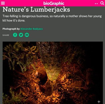 “A truly enchanted image that tells a complete story in a single frame.The lighting is as delicate as the setting; outcompeting tens of thousands of entries this year and trumping tigers, gorillas, elephants, cougars and other big charismatic animals — here is a little mouse... ” said legendary National Geographic photographer Frans Lanting in his introduction of the award. In 2014, the panel of international jury evaluated more than 42,000 entries from 96 countries. This is Alex Badyaev's third Winner title in the BBC Wildlife Photographer of the Year competitions.
