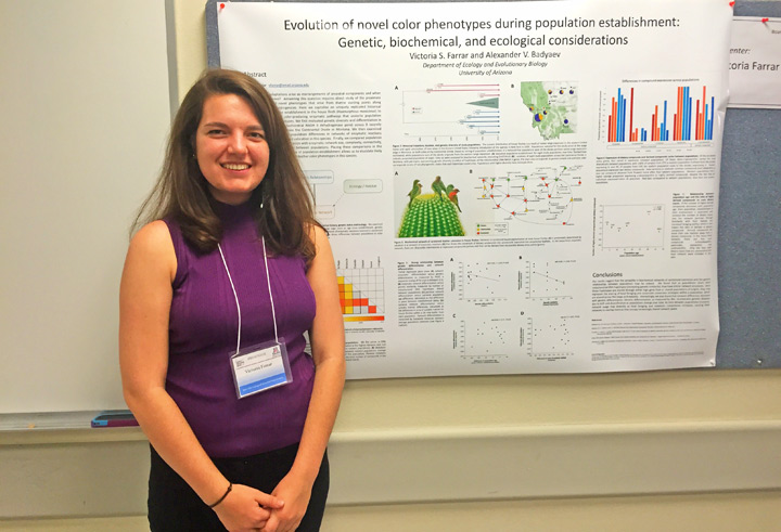 Victoria Farrar is 2014 Leslie N. Goodding Scholar! The Award recognizes Victoria's excellence in scholarship and her exceptional research record. The scholarship will support Victoria's Honor Thesis on investigating evolutionary trajectories of complex color phenotypes during population establishment and differentiation. Hear Victoria talk about her earlier biology project on KXCI 91.3FM.