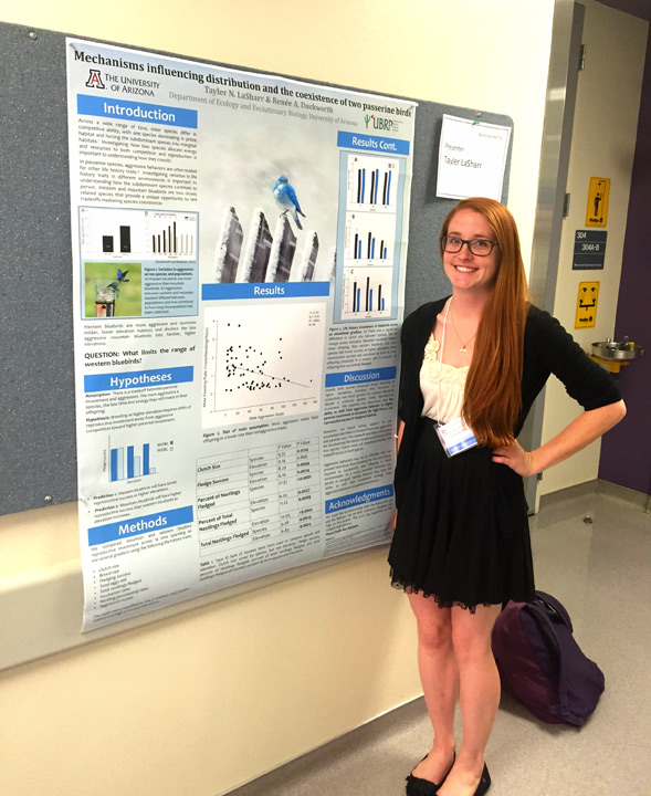 Tayler's presentation with Duckworth Lab "Effects of interspecific aggression on range distribution in closely related species" received the First Place Award at 5th Annual EEB Undergraduate Research Poster Session. In the meantime, Erin "brings UA Bird Collection to the XXI century".