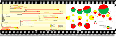"Coevolution of metabolic modification and selective expression enables the use of unstable pigments in long-term evolutionary trends" according to a new cover paper in Proceeding Royal Society B that examined evolutionary transitions between avian strategies to stabilize fast-degrading dietary carotenoids. New cover (also here) paper in Integrative & Comparative Biology outlines a predictive framework to "test the contributions of structural and dynamic properties of deterministic networks to evolutionary diversifications".